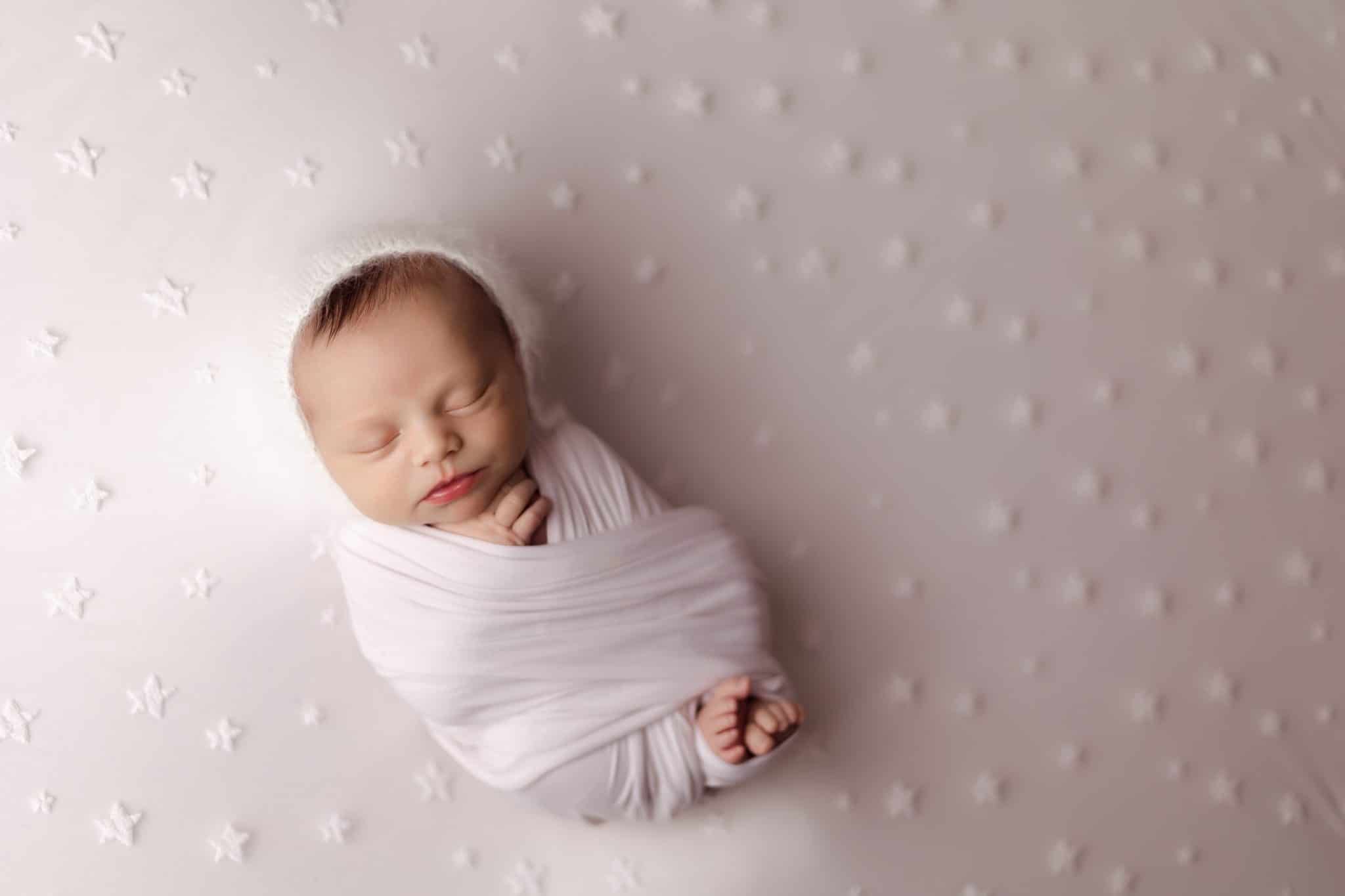 While I loved the mauve color, I have to admit my current backdrop for Northfield newborn photographer sessions right now is this beautiful white star backdrop. The white stars are a great way to add some cute details to the backdrop, but also have when be something that does not take attention away from baby. My goal as your Northfield newborn photographer is to give you timeless images of your newborn that will look amazing in your home for years to come and will also age well through the generations.