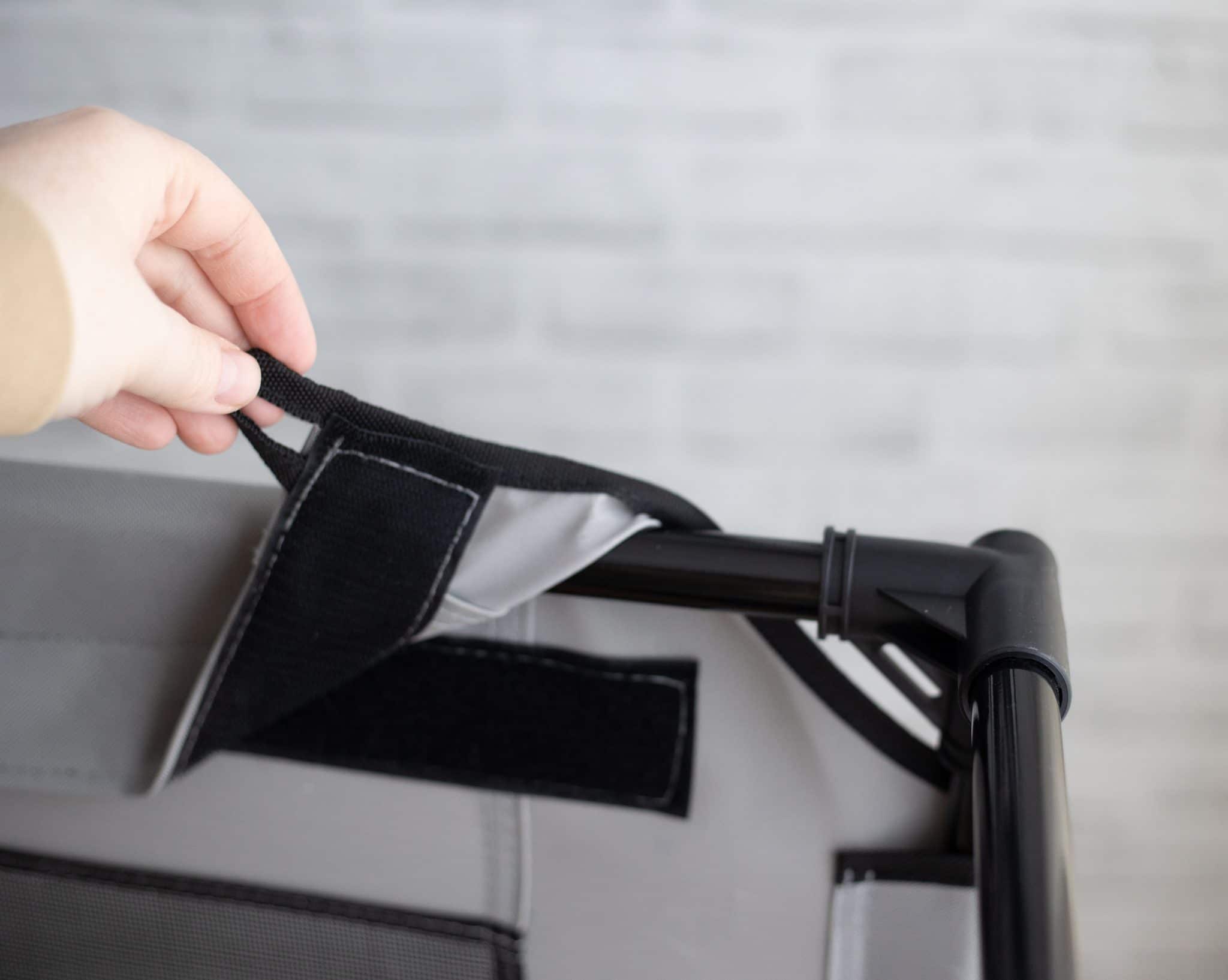This dog bed has Velcro along one end, and lets me adjust the tension of the bed area. This is a huge perk when using a dog bed for newborn photography, because it lets me keep the area where I pose the baby very firm.